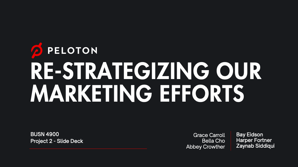 For my Communication for Business Effectiveness course during my final year of undergrad, I was assigned to work with a group to select a company and an executive problem they may be facing. We were then required to form a data story, structured based off of the book “DataStory: Explain Data and Inspire Action Through Story” by Nancy Duarte, and present our findings and recommendations as if we were speaking to the executives of the selected company. My group and I chose to do our project on Peloton and their dilemma of declining equipment sales and increase in excess inventory. We compiled data for our recommendations in our slide document and presented our data story through our slide deck.